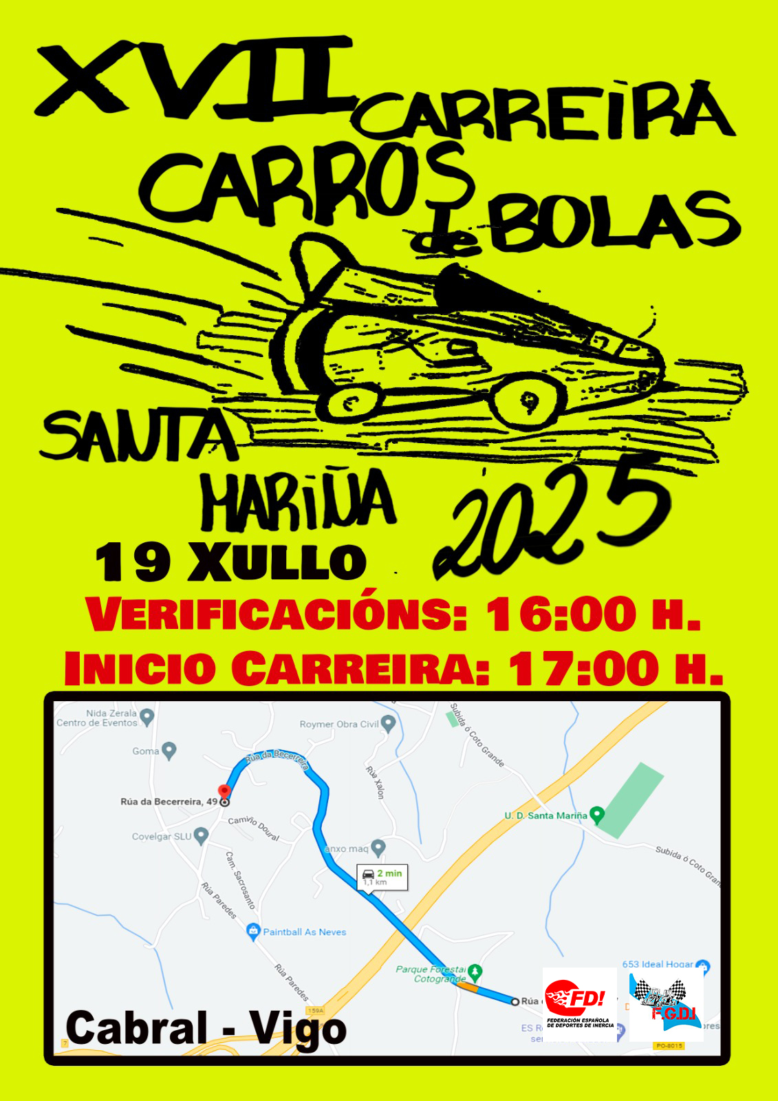 Observaciones: 🔸 APERTURA DE INSCRIPCIONES DÍA 18 DE JUNIO A LAS 00:00H. 🔸 CIERRE DE INSCRIPCIONES DÍA 16 DE JULIO A LAS 23:59H. 🔸 Seguro de Día: DISPONIBLE 🔸 Horarios del evento: Sábado 19/07/2025 🔹 Verificaciones técnicas y administrativas: 16:00 🔹 Remonte de participantes a la línea de salida: 16:45 🔹 Entrenamientos Oficiales: 17:00 🔹 Salida Primera Bajada Oficial: A continuación 🔹 Salida Segunda Bajada Oficial: A continuación 🔹 Entrega de premios: A continuación 🔸 Prueba puntuable para Copa de Galicia. 🔸 Los menores de edad enviarán al organizador de la carrera, la "Autorización Menores 2025" para poder participar en la prueba, envío obligatorio a: pelanas2@gmail.com 🔹 Zona de verificaciones técnicas y administrativas: 42°13'06.2"N 8°39'39.3"W ‼️IMPORTANTE‼️ ❗NOVEDAD❗ Los corredores que no dispongan de licencia federativa, tendrán la posibilidad de solicitar seguro de día de ❗USO EXCLUSIVO❗ para dicha prueba, deberán de hacer ingreso de 35€ en la cuenta de la FDI (BBVA) ES1301822738660201597699 poniendo su Nombre y Apellidos + CABRAL. Envío obligatorio del justificante de pago a info@fedei.com y llevar el día de la carrera el justificante del ingreso y el DNI para su identificación.