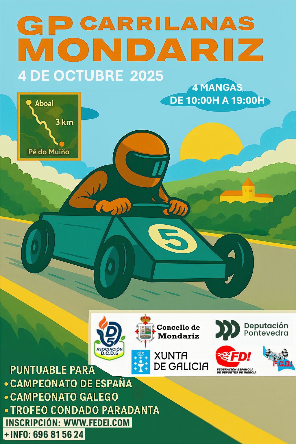 Observaciones: 🔸 APERTURA DE INSCRIPCIONES DÍA 4 DE SEPTIEMBRE A LAS 00:00H. 🔸 CIERRE DE INSCRIPCIONES DÍA 29 DE SEPTIEMBRE A LAS 23:59H O ALCANZADO AFORO MÁXIMO. ‼️NO SE ADMITEN RESERVAS TRAS EL CUPO‼️ 🔸 MÁXIMO 99 PARTICIPANTES . 🔸 Horarios del evento: ▪️ Sábado 4 🔹 Verificaciones Técnicas y Administrativas: 10:00 a 11:00 🔹 Remonte: 11:00 a 11:30 🔹 Entrenamientos: 11:30 a 12:30 🔹 Primera Bajada Oficial: 13:00 🔹 Comida pilotos gratuita: 14:00 a 15:30 🔹 Remonte: 15:30 a 16:00 🔹 Segunda Bajada Oficial: 16:00 🔹 Tercera Bajada Oficial: 18:00 🔹 Entrega de premios: A continuación 🔸 Prueba puntuable para Copa de Galicia, Copa de España y Trofeo Condado Paradanta. 🔸 La clasificación final se obtendrá de la suma de las dos mejores cronos. 🔸 Los menores de edad enviarán al organizador de la carrera, la "Autorización Menores 2025" para poder participar en la prueba, envío obligatorio de la condadoparadantacd@gmail.com 🔸 En caso de error en los copilotos con seguro de día, se deberá enviar los datos del mismo al siguiente email: info@fedei.com adjuntando categoría y nombre del piloto al que acompaña. 🔹 Zona de verificaciones técnicas y administrativas 42°14'20.4"N 8°27'52.1"W (Iglesia Riofrio) ‼️IMPORTANTE‼️ ❗NOVEDAD❗ Los corredores que no dispongan de licencia federativa, tendrán la posibilidad de solicitar seguro de día de ❗USO EXCLUSIVO❗ para dicha prueba, deberán de hacer ingreso de 35€ en la cuenta de la FDI (BBVA) ES1301822738660201597699 poniendo su Nombre y Apellidos + MONDARIZ antes del miércoles previo a la prueba, de no ser abonado no será admitido. Envío obligatorio del justificante de pago a info@fedei.com