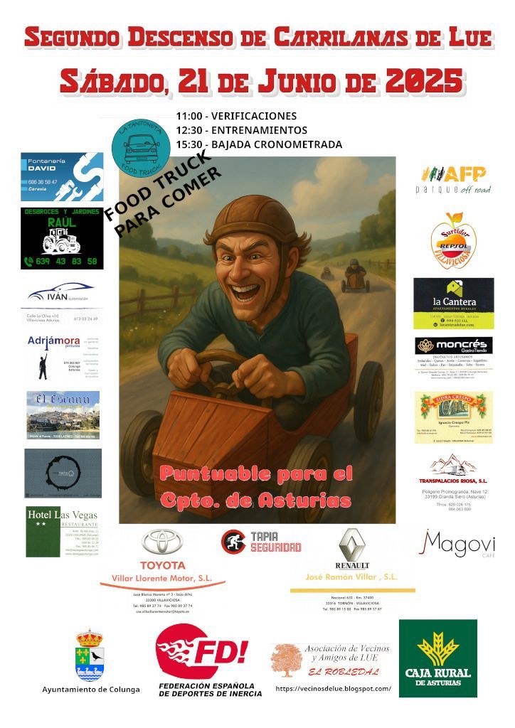 Observaciones: 🔸 APERTURA DE INSCRIPCIONES DÍA 10 DE JUNIO A LAS 00:00H. 🔸 CIERRE DE INSCRIPCIONES DÍA 18 DE JUNIO A LAS 23:59H. 🔸 Seguro de Día: DISPONIBLE 🔸 Horarios del evento: Sábado 21/06/2025 🔹 Verificaciones técnicas y administrativas: 11:00-12:00 🔹 Remonte de participantes a la línea de salida: 12:00 🔹 Entrenamientos Oficiales: 12:30 🔹 Salida Primera Bajada Oficial: 15:30 🔹 Salida Segunda Bajada Oficial: A continuación 🔹 Entrega de premios: A continuación 🔸 Prueba puntuable para Copa de Asturias. 🔸 Los menores de edad enviarán al organizador de la carrera, la "Autorización Menores 2025" para poder participar en la prueba, envío obligatorio a: arturotuero@gmail.com 🔹 Zona de verificaciones técnicas y administrativas: 43.493620, -5.306992 ‼️IMPORTANTE‼️ ❗NOVEDAD❗ Los corredores que no dispongan de licencia federativa, tendrán la posibilidad de solicitar seguro de día de ❗USO EXCLUSIVO❗ para dicha prueba, deberán de hacer ingreso de 35€ en la cuenta de la FDI (BBVA) ES1301822738660201597699 poniendo su Nombre y Apellidos + LUE. Envío obligatorio del justificante de pago a info@fedei.com y llevar el día de la carrera el justificante del ingreso y el DNI para su identificación.